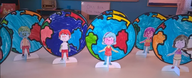 Έπειτα κάθε παιδί-φιγούρα ''στέκεται' 'και στην πίσω πλευρά του σώματος του κολλάμε τον πλανήτη.